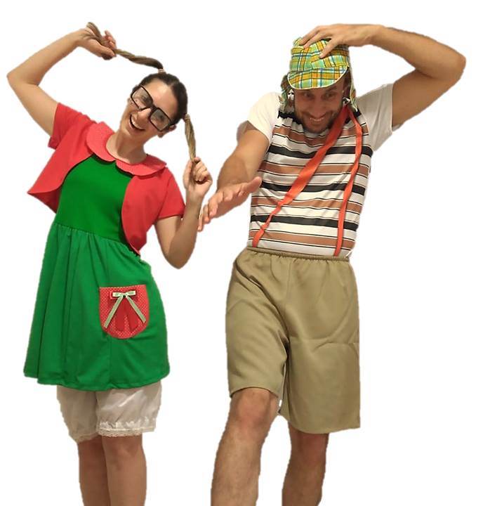 Fantasia Chaves, composta por camiseta estampada, bermuda e chapéu (o xadrez pode sofrer variação de acordo com a disponibilidade).