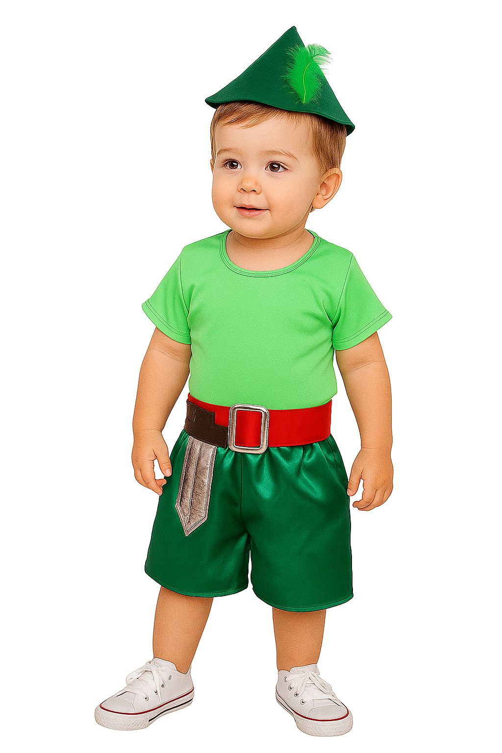 Direto da Terra do Nunca para deixar qualquer festa ainda mais fofa! A Fantasia Bebê Peter Pan é perfeita para transformar o pequeno em um personagem clássico, alegre e cheio de imaginação. Ideal para Carnaval, festas à fantasia, mesversários, ensaios fotográficos e aniversários temáticos.