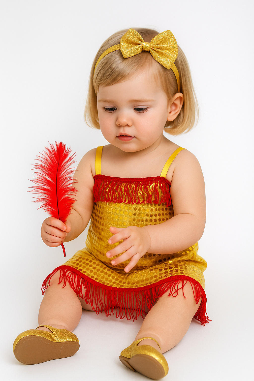 Ideal para festas à fantasia, carnaval, apresentações escolares ou até ensaios fotográficos super criativos. Sua criança vai arrasar com essa produção divertida e cheia de glamour!