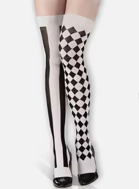 Meia 7/8 branca, adulto. Estampa assimétrica, sendo 1 pé diferente do outro.